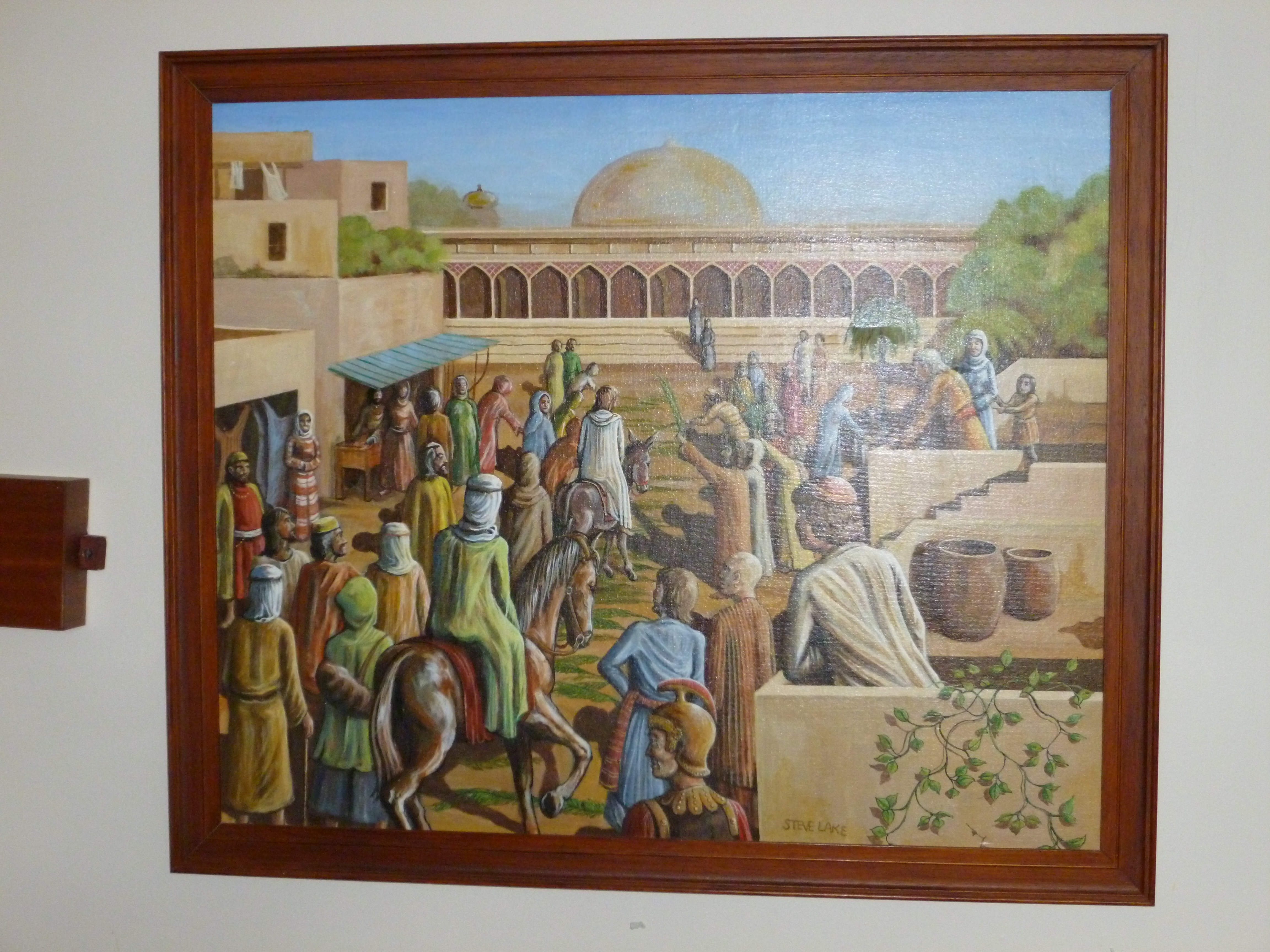 ‘Triumphal Entry of Jesus into Jerusalem’. Oil painting. Gift of local artist, Steve Lake (1944-2018). Date ??