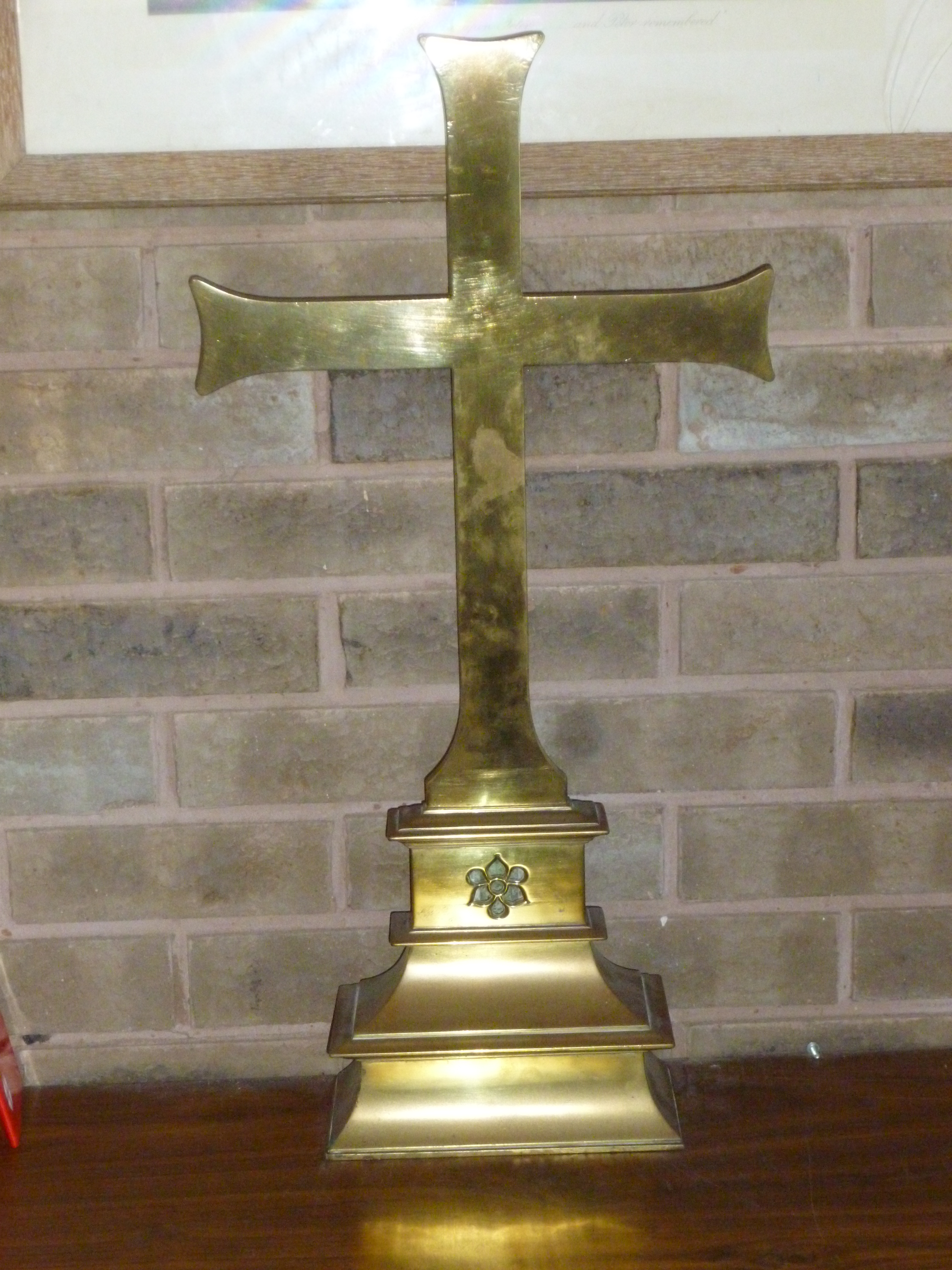 Vestry cross. Gift of St. Thomas and St. James Parish Church, Worsborough to the Christian Centre in July, 1978. Originally gifted to St. James Church (merged with St. Thomas in 1974) on Easter Day, 1872.